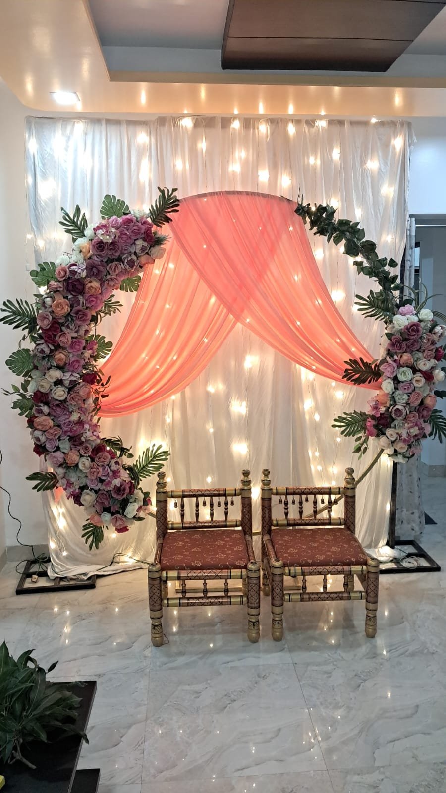 Royal entry setups, floral pathway décor & premium welcome arrangements.
